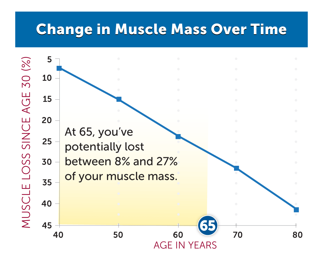 Science (and the mirror) continues to confirm that we lose muscle mass as we age. It's called sarcopenia. Between 30 and 80, men and women can lose between 30 and 50% of their muscle strength.